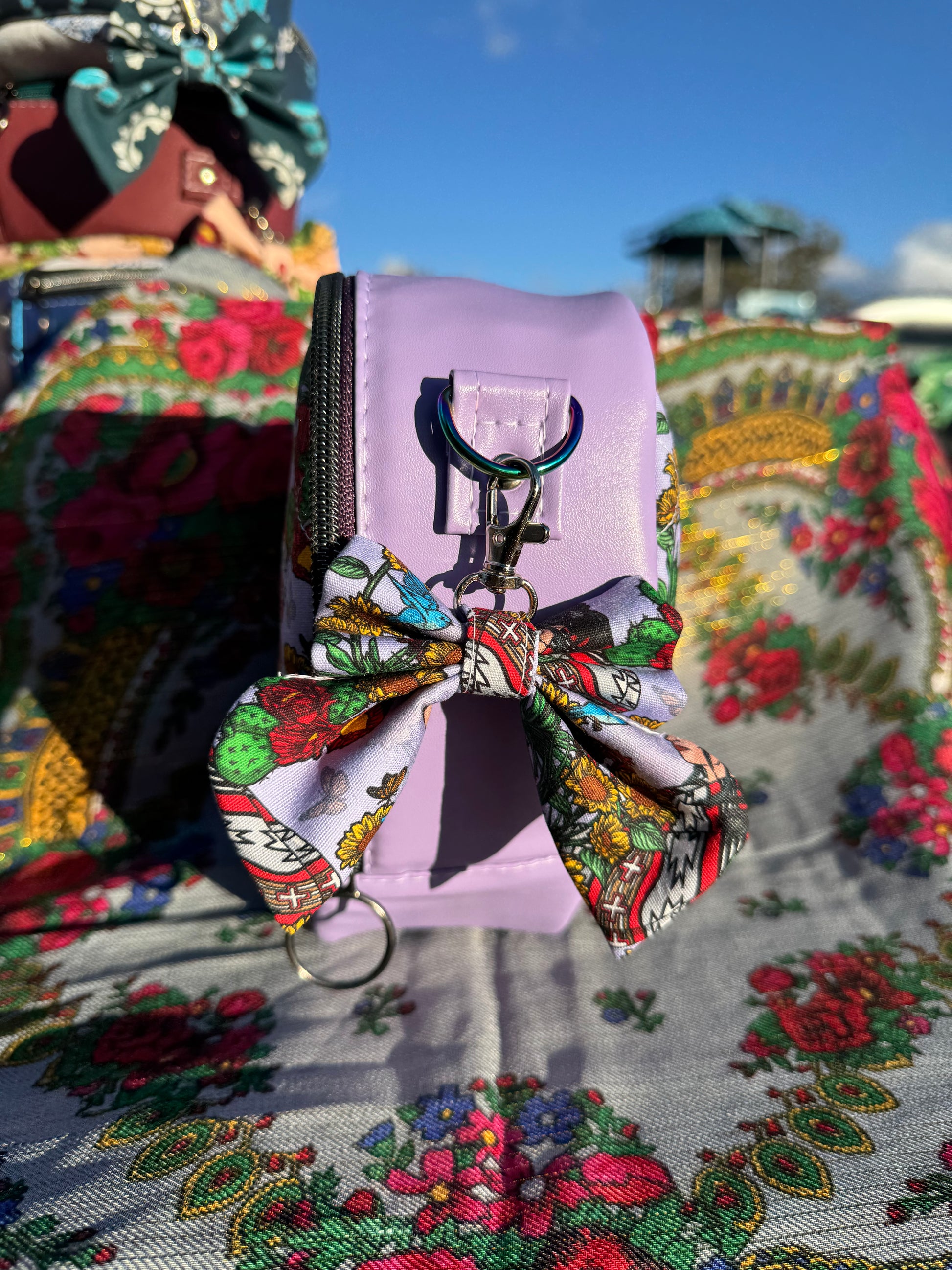 These are handmade. They are not perfect, and have their own flaws. These are small bags, they are NOT full size. Features a hand quilted exterior, faux leather side panels and a water resistant interior.
